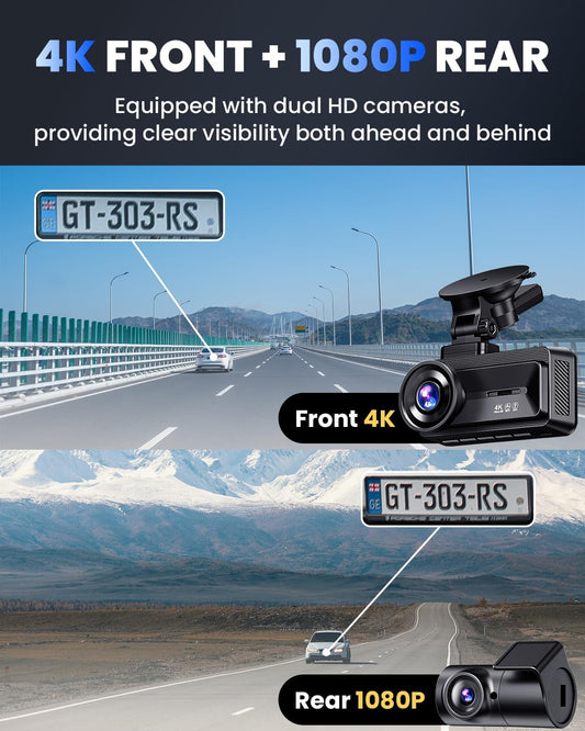 COOLCRAZY N8pro Dual Dash Cam 4K+1080P